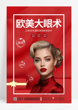 红色大气欧美大眼术美容宣传海报模板