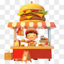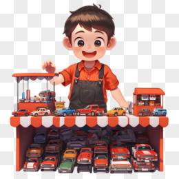 卡通小男孩和小女孩站在玩具摊位前免抠元素