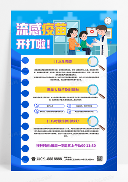 蓝色扁平风卡通流感疫苗接种宣传海报设计