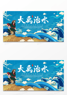 手绘插画风神话故事之大禹治水展板设计