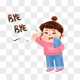 手绘卡通女孩挥泪拜拜免抠元素