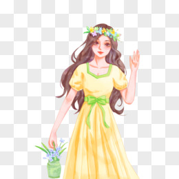 手绘水彩少女打招呼免抠元素