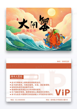 简洁国潮风插画橙黄色大闸蟹宣传会员卡vip卡大闸蟹