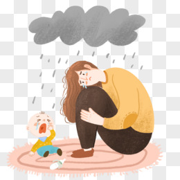 母亲节妈妈温柔的抱着孩子卡通免抠元素