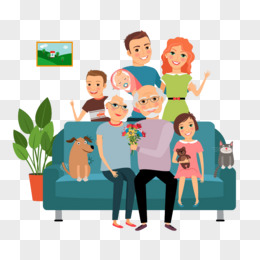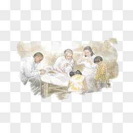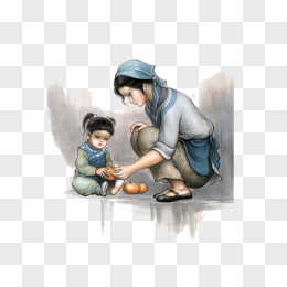 手绘卡通女儿陪伴年迈的母亲背影免抠素材