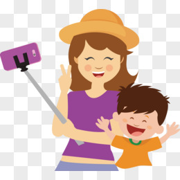 卡通手绘妈妈带小孩和舞狮子的人玩耍免抠元素