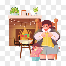 卡通手绘妈妈洗菜切菜做菜套图元素