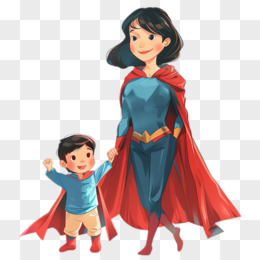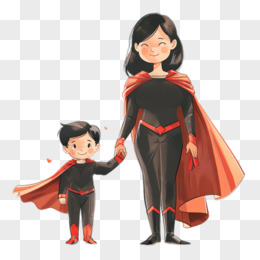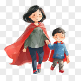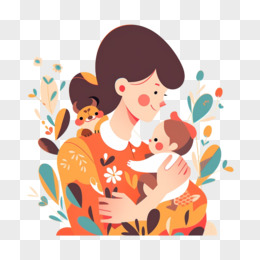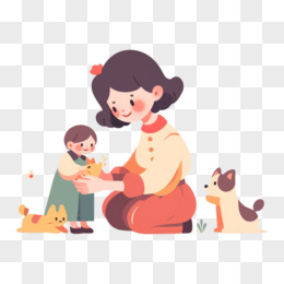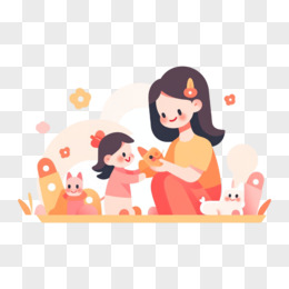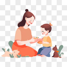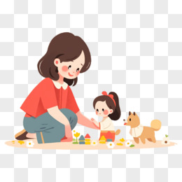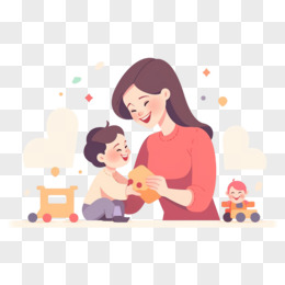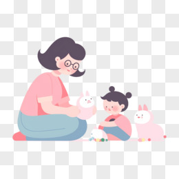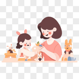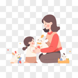 卡通手绘妈妈和孩子玩布偶玩具元素