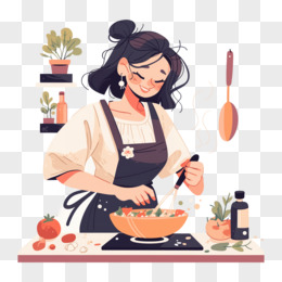 卡通手绘妈妈洗菜切菜做菜套图元素