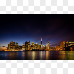 蓝色天空黄色城市灯光