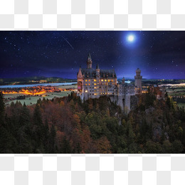 星空下的城市夜景灯光