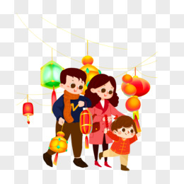 卡通手绘小朋友新年拿灯笼玩耍免抠元素