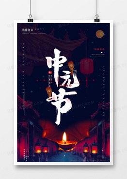黑色简约大气中元节海报设计