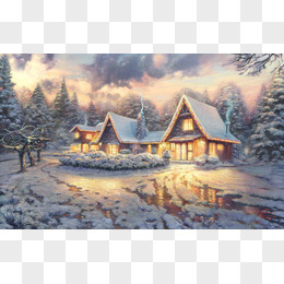小屋灯火透明雪景冬天寒冷