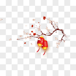 枝头挂着的古风灯笼免抠元素