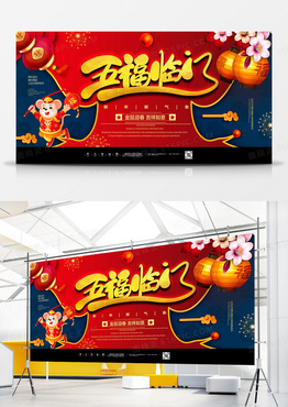 红金卡通2020春节五福临门鼠年展板