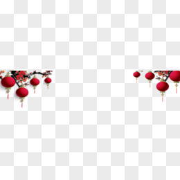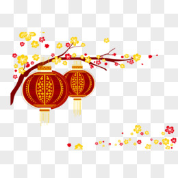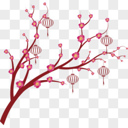 国潮插画新年装饰通用素材树枝上三个红色灯笼免抠元素