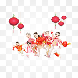 卡通风新年元素一对正方形红色中国灯笼免抠元素