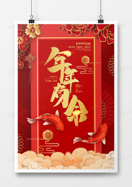 红金色中国风新年元宝附带锦鲤灯笼装饰