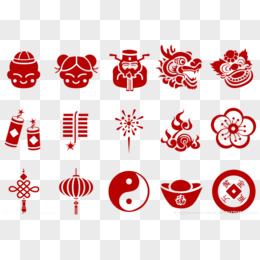 灯笼鞭炮金元宝铜钱等设计矢量素材,