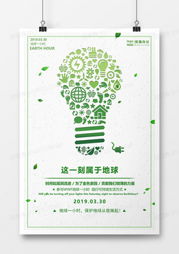 绿色简约地球一小时这一刻属于地球公益海报