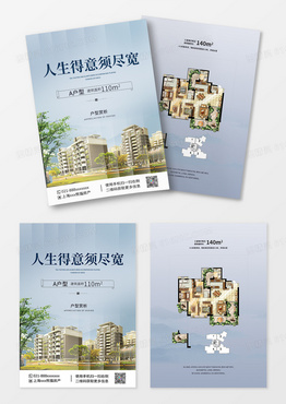 浅蓝高端创意大气人生得意须尽宽地产促销宣传单房地产宣传单