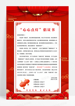 红色简约大气红色系心心点灯倡议书海报宣传海报