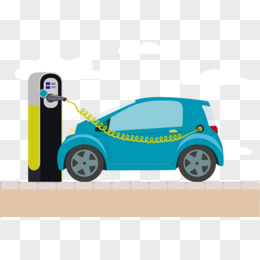3D卡通带插头的蓝色新能源汽车在充电桩充电免抠元素