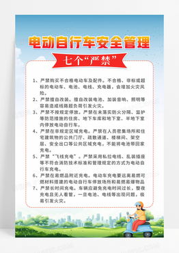 蓝色小清新电动自行车安全管理七个“严禁”安全管理海报