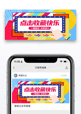 卡通通用点击收藏快乐新媒体引导公众号封面配图图片