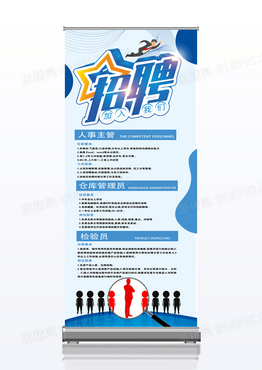 蓝色相间工厂公司招聘易拉宝展架海报电缆行业吸纳人才工厂招聘