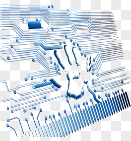 3D蓝色圆形电路板和悬浮的大脑传输信息免抠元素