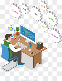 卡通手绘办公室电脑学习合作插画