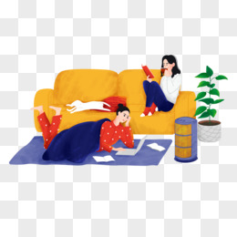 手绘卡通冬季闺蜜宅家看书玩电脑素材