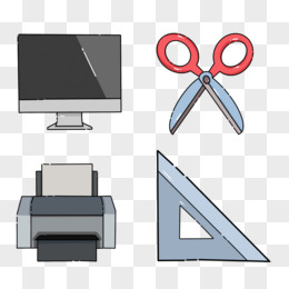 剪刀电脑打印机卡通元素