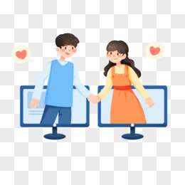 手绘卡通电脑线上网恋免抠素材