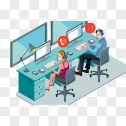 卡通矢量创意插画风电脑网络在线招聘招人素材