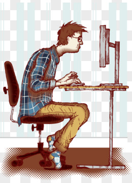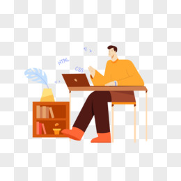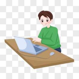手绘卡通在线办公的男孩子