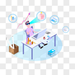 办公场景办公用品盒子数据桌子人物气泡
