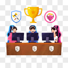 卡通手绘选手打电竞比赛场景素材