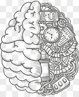 矢量手绘黑白大脑