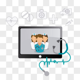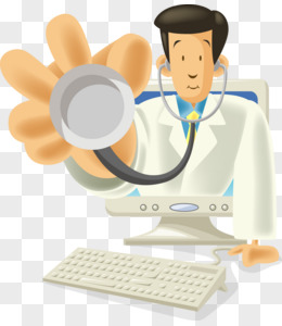 插画一个电脑屏幕里是穿白大褂的医生看病免抠元素