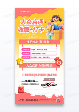 橘色大众点评收藏打卡促销活动海报