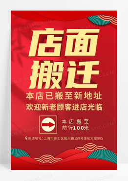 红色喜庆公司地址搬迁通知海报