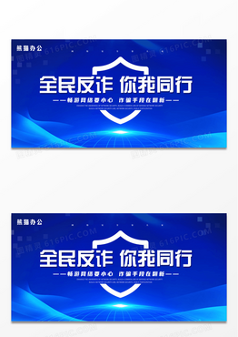 蓝色电信反诈骗打击网络诈骗网络诈骗你我共防全民反诈展板.