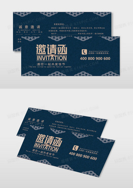 复古和风典雅背景蓝色大气节日年会晚宴邀请函