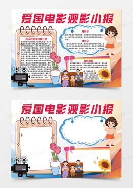 爱国观影手抄报小报卡通人物插画