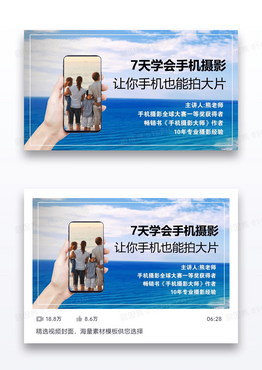 蓝色清新手机摄影手机拍大片教程课程封面设计