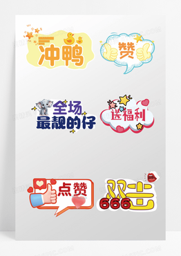 黄色蓝色卡通冲鸭点赞送福利双击手举牌可爱