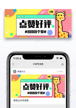像素风点赞好评通用公众号封面配图图片设计